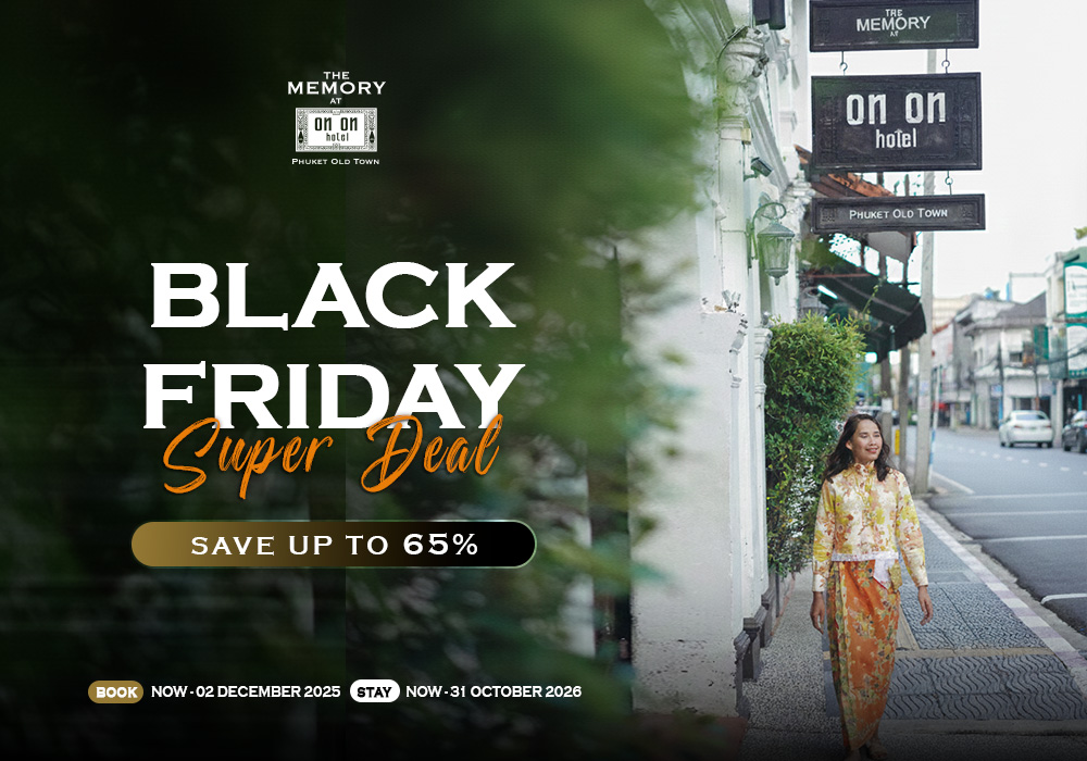 Discover an exclusive Black Friday hotel deal at The Memory at On On Hotel, the most iconic heritage hotel in Phuket Old Town. This limited-time offer invites you to stay in one of Phuket’s most historic landmarks while enjoying unmatched savings and authentic cultural charm.